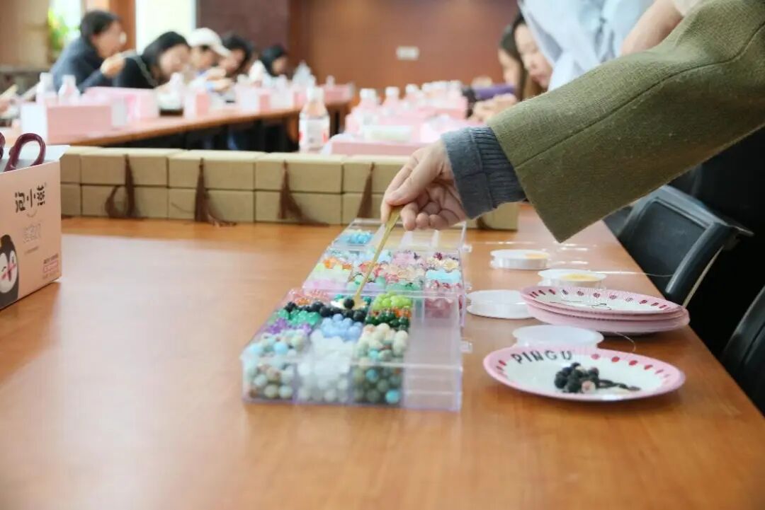 活动以创意手作为载体,为女教职工打造专属的“艺术疗愈时光”,平日忙于教学科研、行政事务的老师们化身“生活艺术家”,或专注挑选珠串配色,或巧思设计图案造型,在指尖流转中编织出独一无二的艺术品。每一颗珠子都承载着对生活的热爱与对未来的期许。活动现场欢声笑语不断,教师们彼此交流灵感,分享创作心得,在协作中拉近距离,在互动中感受关怀。
