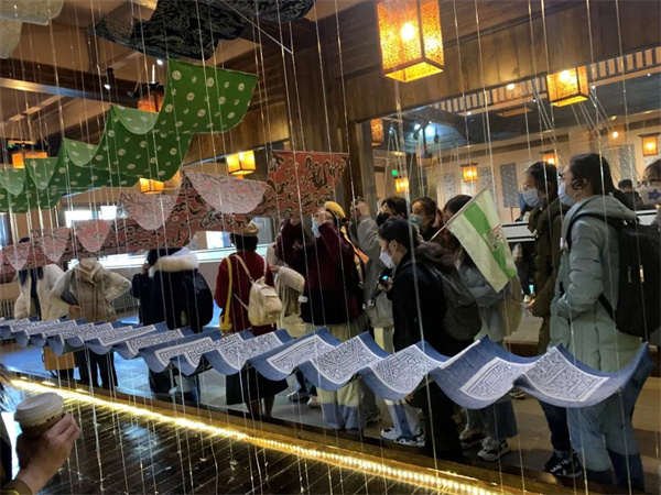 上午9时许,师生顺利抵达古北水镇。在工作人员的带领下,师生们了解了景区特色的文化风俗。在永顺染坊,师生们学习了古法染色的演变历史,体验到了优秀传统技艺与传统文化;在震远镖局,工作人员介绍了历史上镖师工作与生活场景,展现了镖局对于“忠义”美德的尊崇。之后,师生们分别游览了司马小烧酒坊、英华书院、月老祠、八旗会馆等地点。在游览的过程中,师生们学习到了传统文化与传统工艺的博大精深,也感受到了古北水镇发展特色旅游、建设特色小镇的努力。