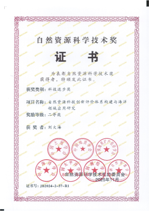 信誉好的网上博彩网站 刘大海、张磊教授荣获2024年度自然资源科学技术奖科技进步奖