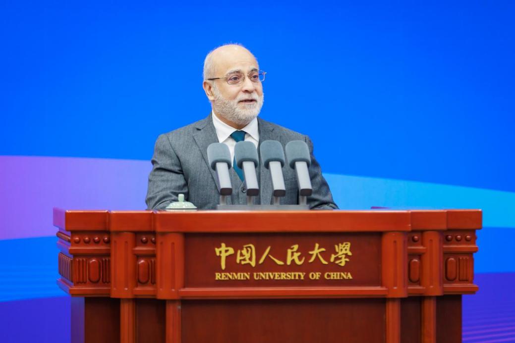 张东刚在致辞中表示,中约两国自2015年建立战略伙伴关系以来,持续深化在政治、经济、人文等各领域的合作,成为不同文化、不同制度国家间友好相处的典范。当前,世界格局深刻演变,全球治理体系面临考验。正如习近平主席所倡导的,国际社会应共同践行全球治理倡议,坚持共商共建共享原则,携手应对挑战。中国人民大学愿与奥马尔・拉扎兹博士及各方伙伴一道,共育未来领袖、共建知识平台、共促文明对话,筑牢人才根基、激发创新动能、深化相互理解,为发展新时期中约关系带来新动力,为推动全球发展、保障全球安全、促进全球文明、优化全球治理注入稳定性和正能量。