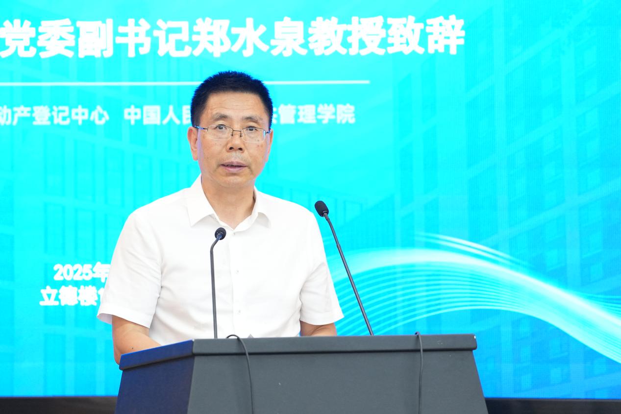 中国人民大学党委副书记郑水泉教授为会议致辞。郑水泉书记对与会嘉宾的到来表示热烈欢迎,他指出,自然资源市场监测分析与智能决策实验室建设既是对国家战略部署的积极响应,也是推动自然资源领域科研创新与实践应用深度融合的重要举措。未来,学校将依托实验室平台,通过提升自主创新能力、促进高质量科研成果转化应用、培养高水平人才队伍,进一步回答自然资源市场领域的中国之问、世界之问、人民之问、时代之问,实现自然资源市场监测与决策从经验驱动向数据驱动、智能驱动的转变,为中国自然资源市场建设提供强大智力支持。
