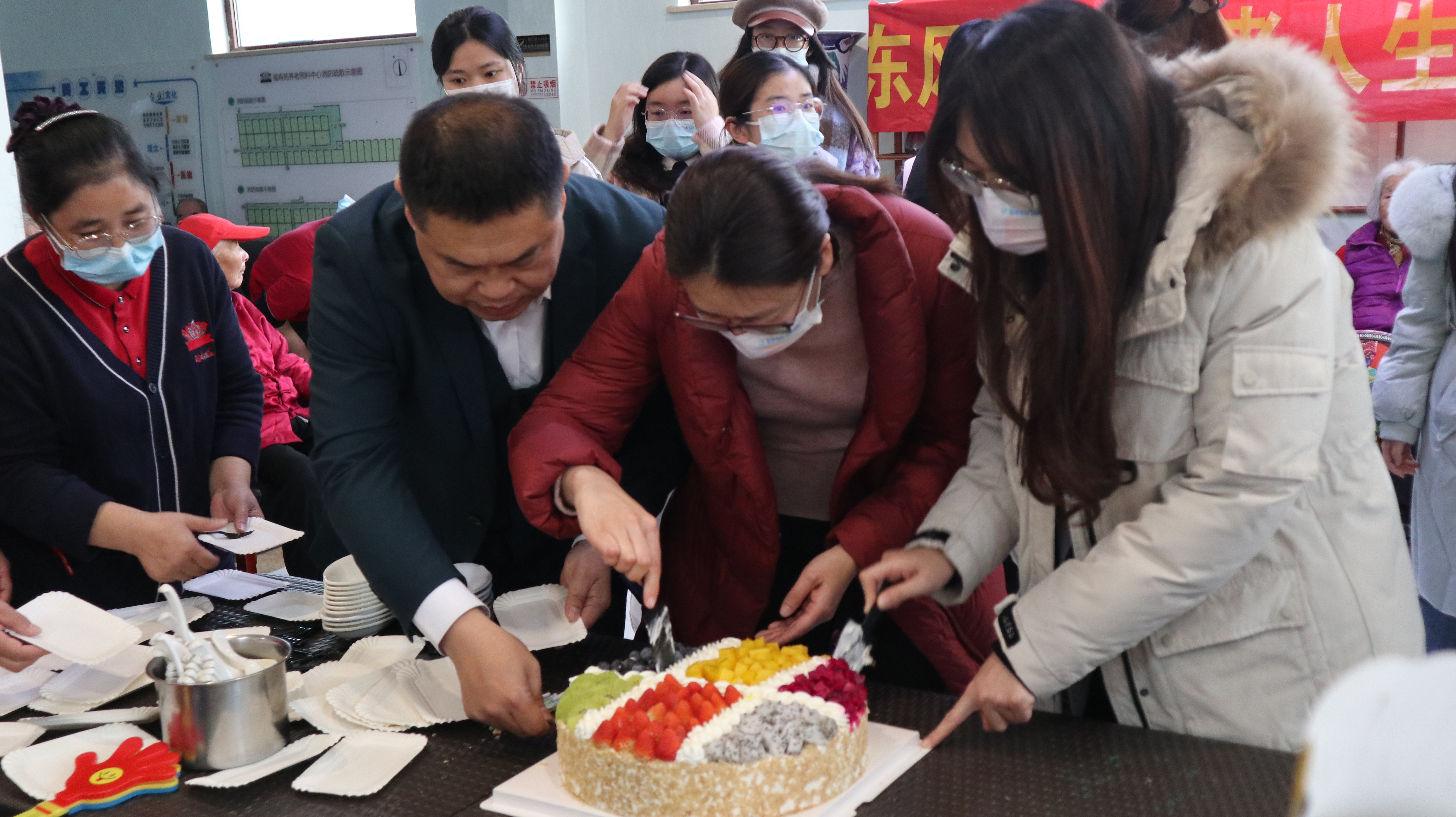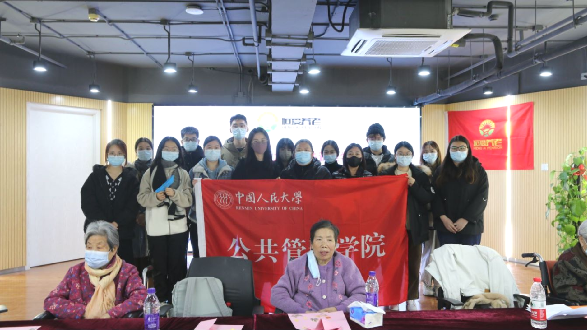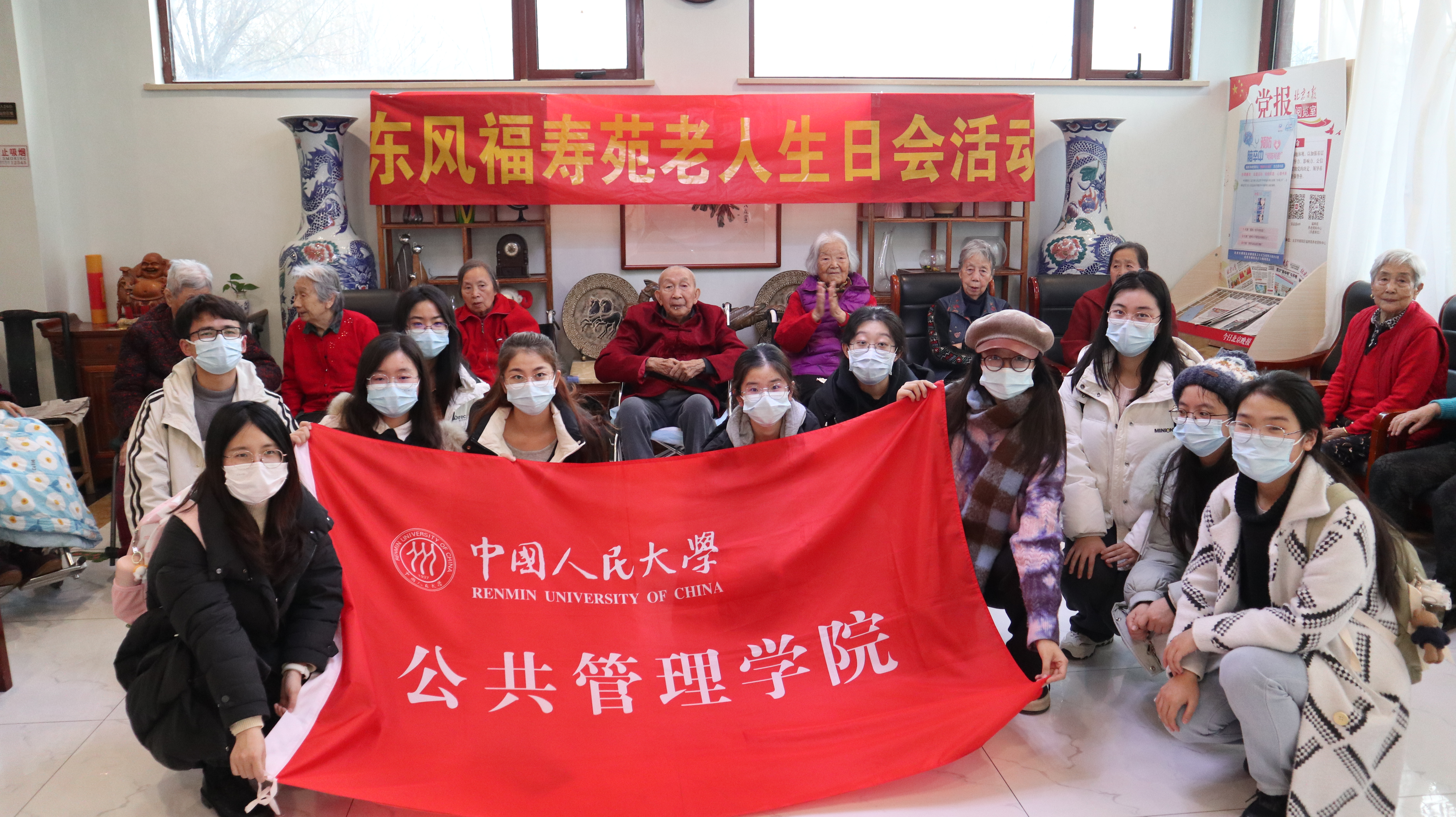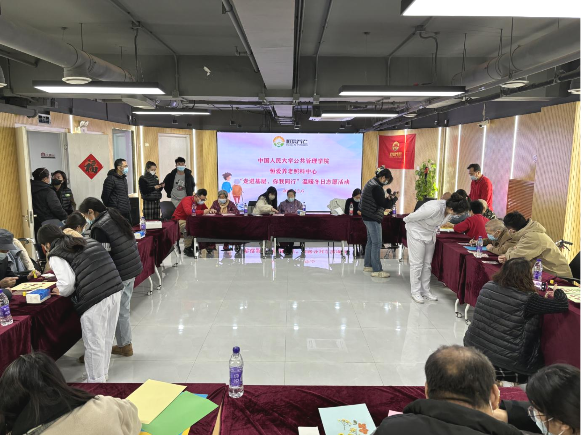 随后,同学们分为两组,分别前往福寿苑养老照料中心和恒爱养老照料中心开展敬老志愿服务活动,通过与老人结对做手工、互动游戏、才艺表演、生日庆祝会等环节,给老人带去冬日温暖。
